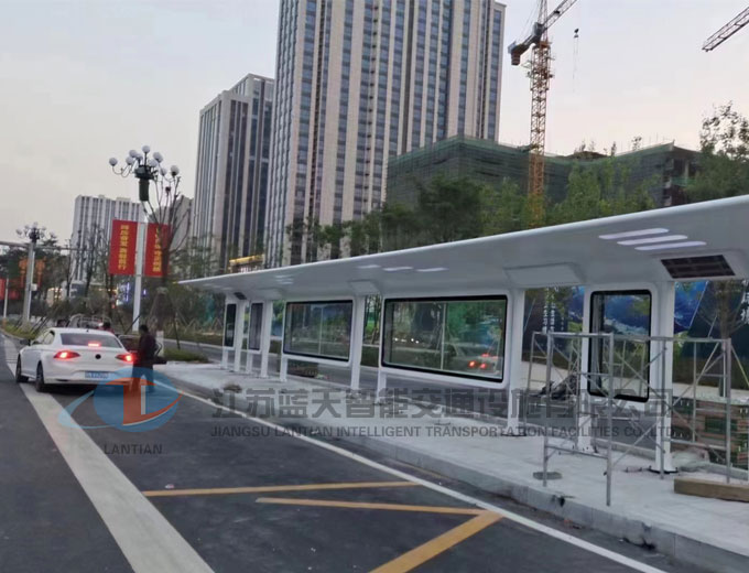 現(xiàn)代候車亭發(fā)貨安裝現(xiàn)場(chǎng)